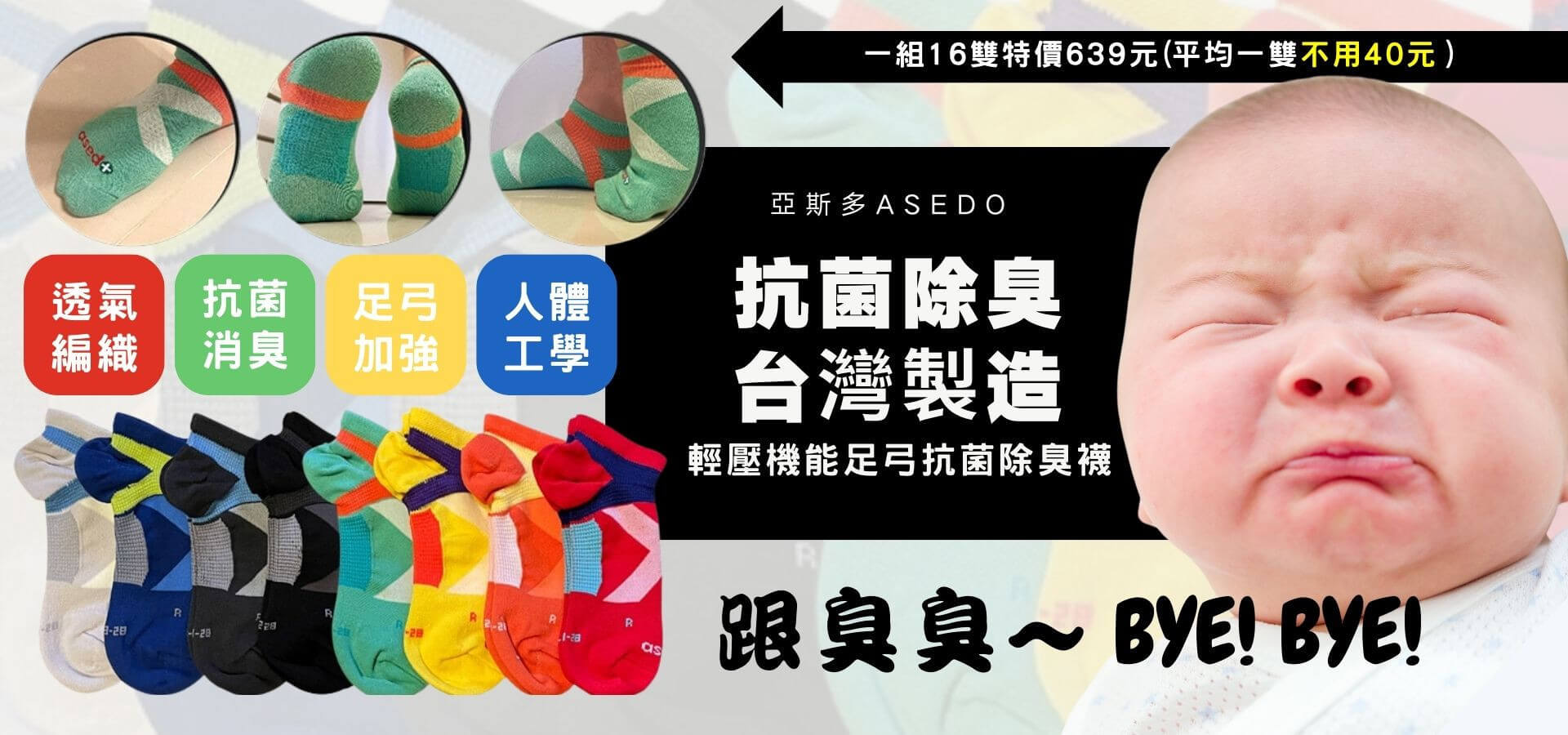 【黑店9481】台灣製亞斯多ASEDO 輕壓足弓抗菌除臭3/4機能長襪16雙