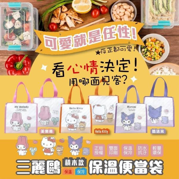 【正版授權】三麗鷗積木款保溫便當袋3個組